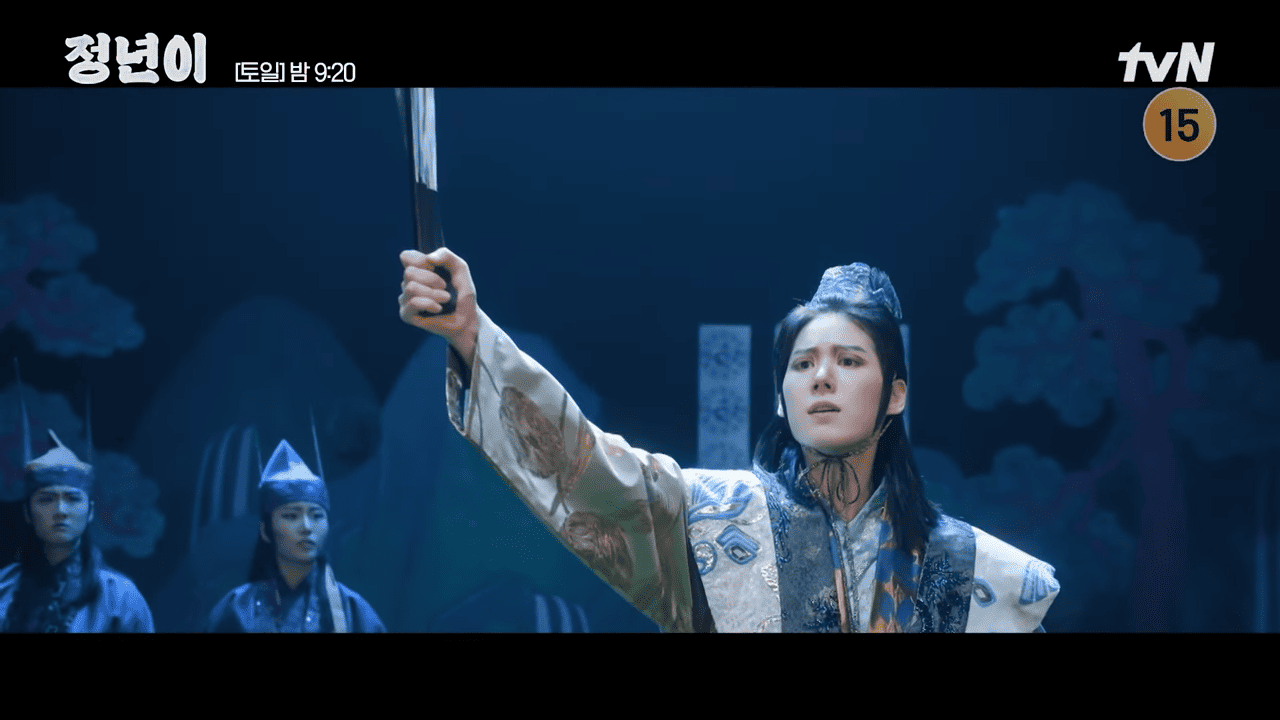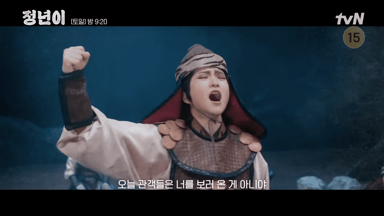 군졸의 차례가 다가오자 강 단장은 정년이에게 "너를 보러 온 게 아니니 튈 생각은 하지 마라"라고 충고합니다. 하지만 무대에 오른 정년이는 관중이 잠잠하자 전쟁터에서 가족을 잃었던 과거 기억을 떠올리며 큰 소리로 외치기 시작합니다. 이에 놀란 관객과 배우들 사이에 순간 정적이 감돌며 극의 분위기가 고조됩니다.